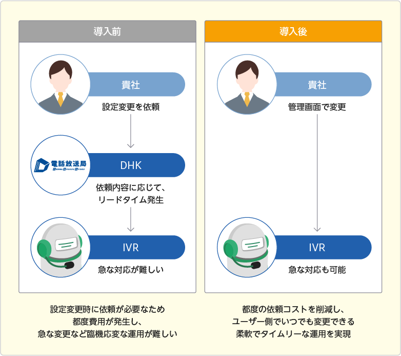 DHK CANVASは、コールセンター現場の声を反映して開発されたボイスボット(IVR)です。